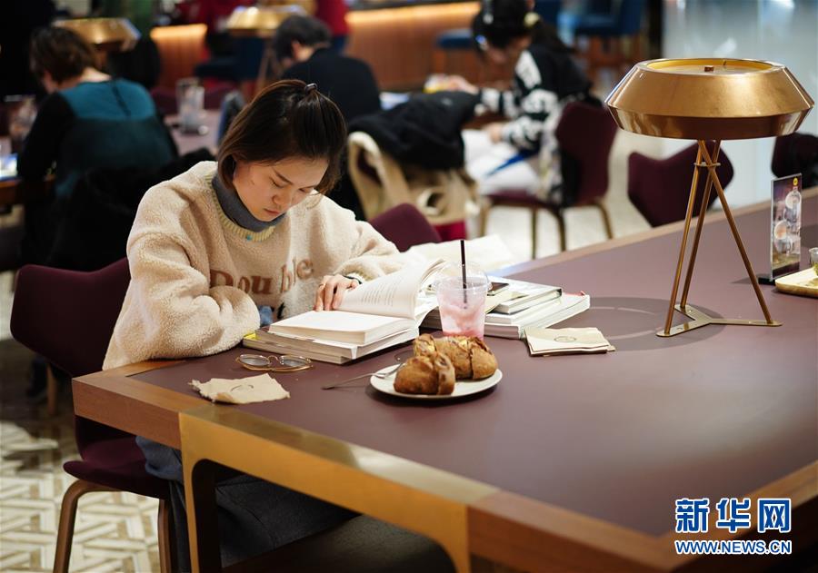 1月14日,讀者在西安高新區一家大型書店內讀書休閑。