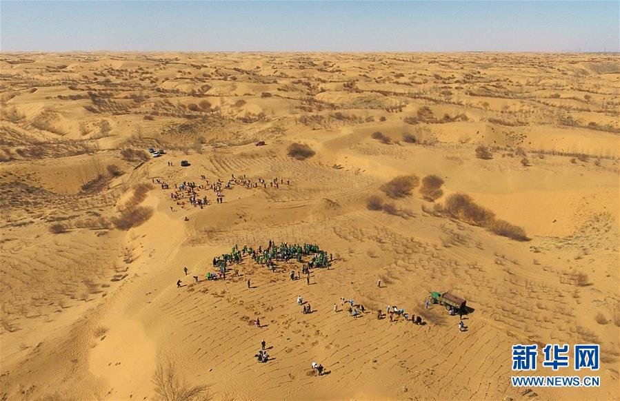 3月31日,中韓青年在內蒙古達拉特旗庫布其沙漠中植樹(無人機拍攝)。 當日,200余名中韓兩國青年志愿者來到內蒙古自治區達拉特旗庫布其沙漠種樹。2006年起,中國國際青年交流中心與韓國韓中文化青少年協會組織兩國青年志愿者在庫布其沙漠植樹,參與防沙固沙項目。截至目前已植樹850多萬株,造林3萬多畝。 新華社記者 劉磊 攝