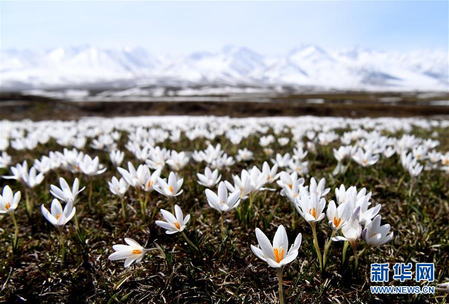 這是新疆那拉提景區雪山腳下盛開的野百合(4月4日攝)。新華社記者 沙達提 攝