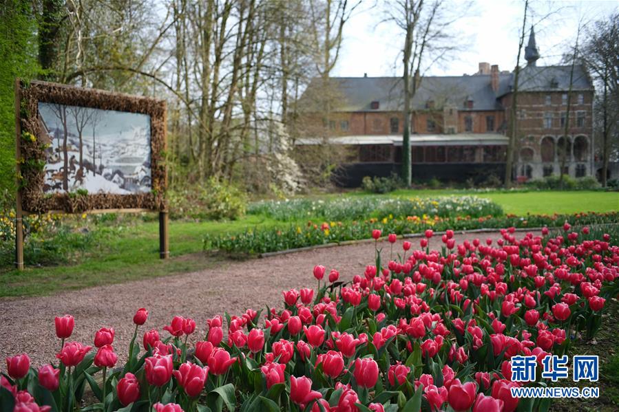 這是4月6日在比利時布魯塞爾西郊的拜加登城堡拍攝的郁金香。 為期一個月的第16屆布魯塞爾國際花展于4月6日到5月5日在布魯塞爾拜加登城堡舉行,共展出約500種、超過100萬株鮮花。盛放的郁金香、水仙花、風信子等花卉與古樸的城堡一起構成了一幅美麗的畫卷,吸引了大批游客前來參觀。 新華社記者張鋮攝