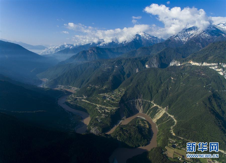 這是4月27日在云南省貢山獨龍族怒族自治縣丙中洛鎮拍攝的“怒江第一灣”(無人機拍攝)。 怒江自青藏高原一路奔騰向南流至云南省貢山獨龍族怒族自治縣丙中洛鎮,高黎貢山與碧羅雪山夾江而立,江水順山勢急轉形成了一個氣勢磅礴的半圓形大灣,被稱為“怒江第一灣”。 新華社記者 江文耀 攝