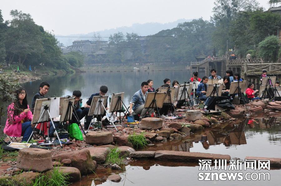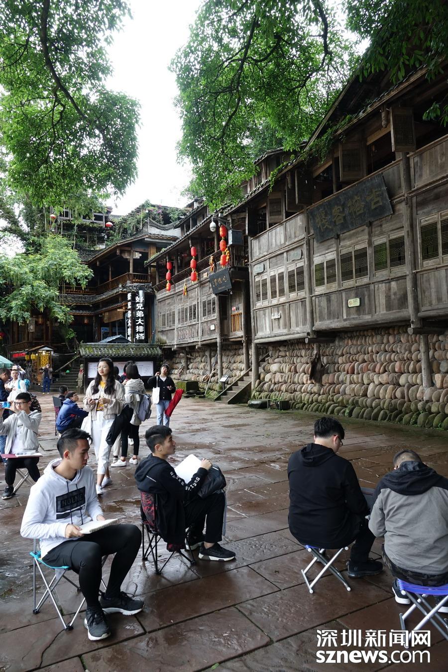 古鎮吸引很多寫生的學生 李 仁奇 攝
