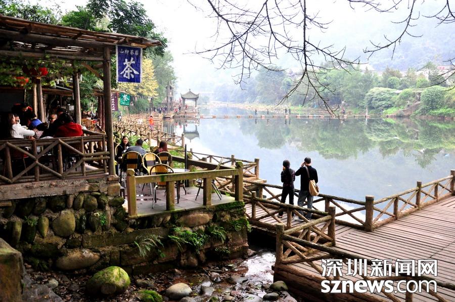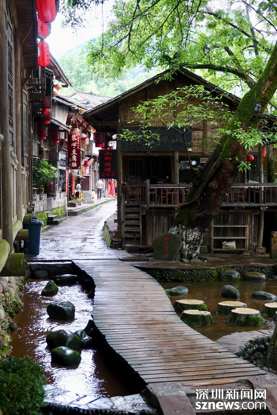 古鎮背靠峨眉、瓦屋仙山,楊村河、花溪河擁鎮而過。這里有川西風情吊腳樓、訪古尋悠水碼頭、親水臨河古棧道、百年民居匯老街等特色景觀。李 仁奇 攝
