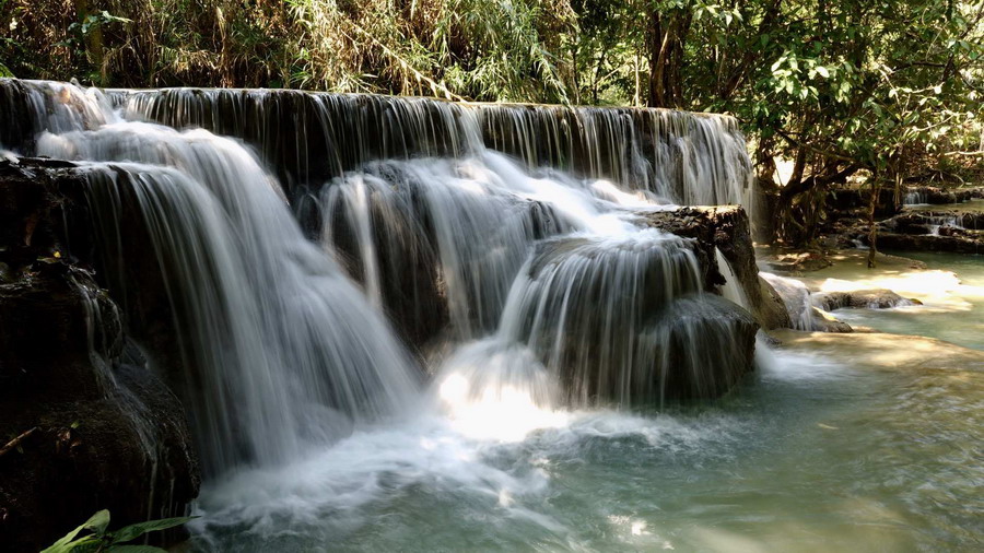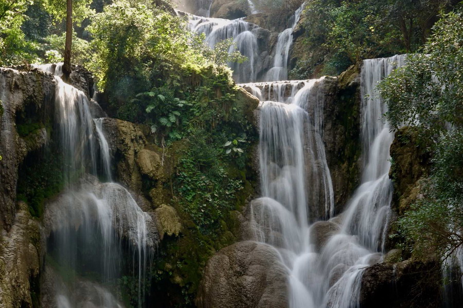 光西瀑布是一個瀑布群,位于瑯勃拉邦以南30多公里的原始森林中,其中一處高40多米,雖然水量不大,但有一種天然的涓細之美,不同凡響。李仁奇 攝