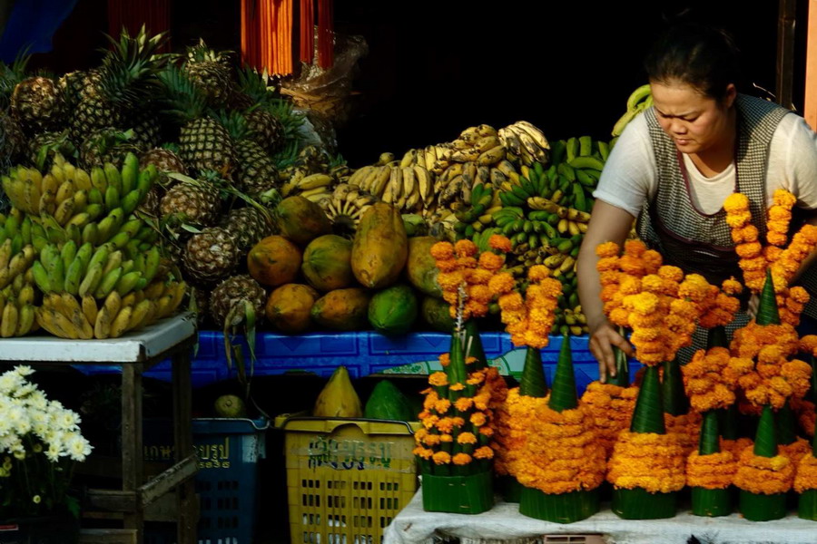 隨著旅游業的發展,現在游客們也都參與到布施活動中。僧侶們一直保持著依靠清晨化緣得來的食物充饑的習俗,多余的食物會用于慈善活動。李仁奇 攝