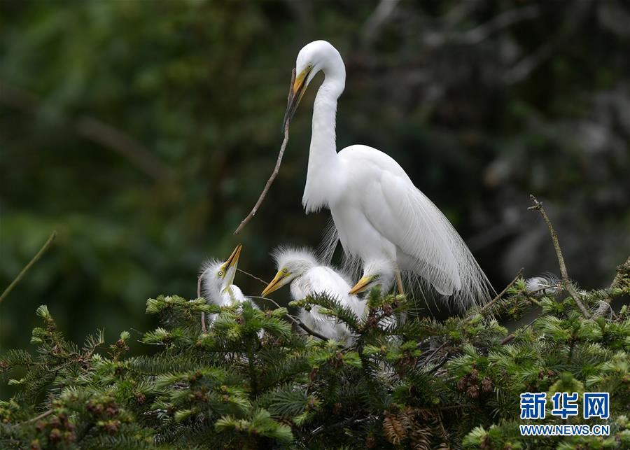 在江西省南昌市新建區(qū)象山森林公園內(nèi),白鷺和自己的雛鳥在一起(5月21日攝)。 近日,在江西省南昌市新建區(qū)象山森林公園內(nèi),已安家筑巢的大批鷺鳥陸續(xù)孵化出了后代。象山森林公園有著“鷺鳥王國(guó)”的美譽(yù),生態(tài)環(huán)境良好,每年都會(huì)吸引白鷺、蒼鷺、夜鷺等鷺鳥飛抵棲息和繁衍后代。 新華社記者 彭昭之 攝