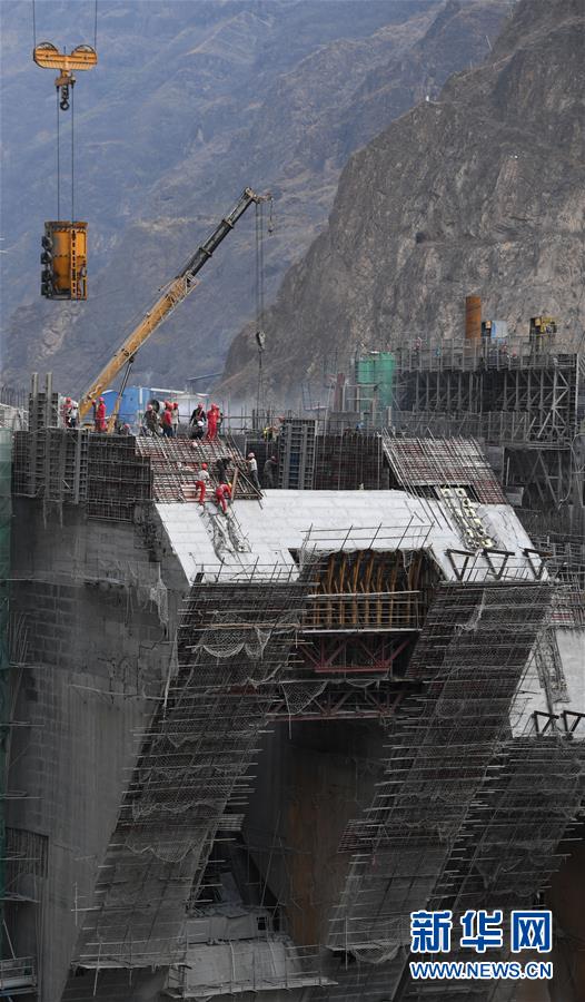 5月30日,工人在烏東德水電站大壩主體工程上施工。新華社記者陳曄華攝