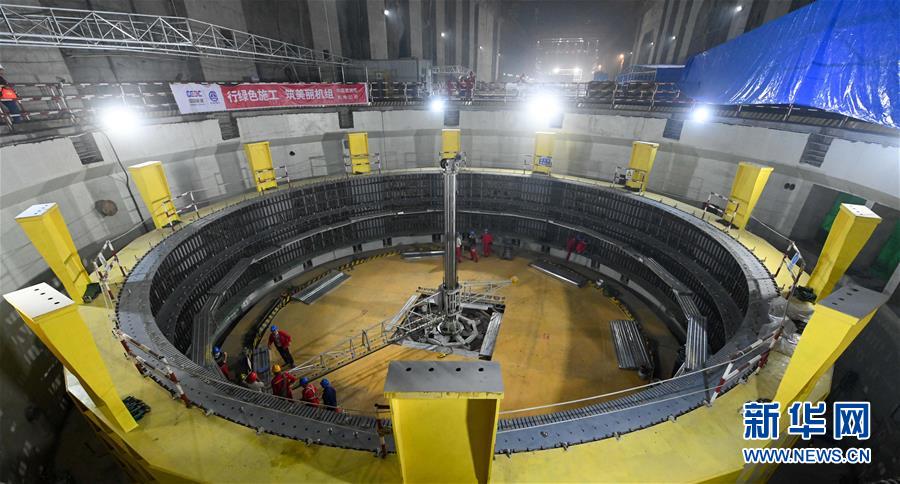 5月30日,工人在烏東德水電站左岸地下電站主廠房內工作。 新華社記者陳曄華攝