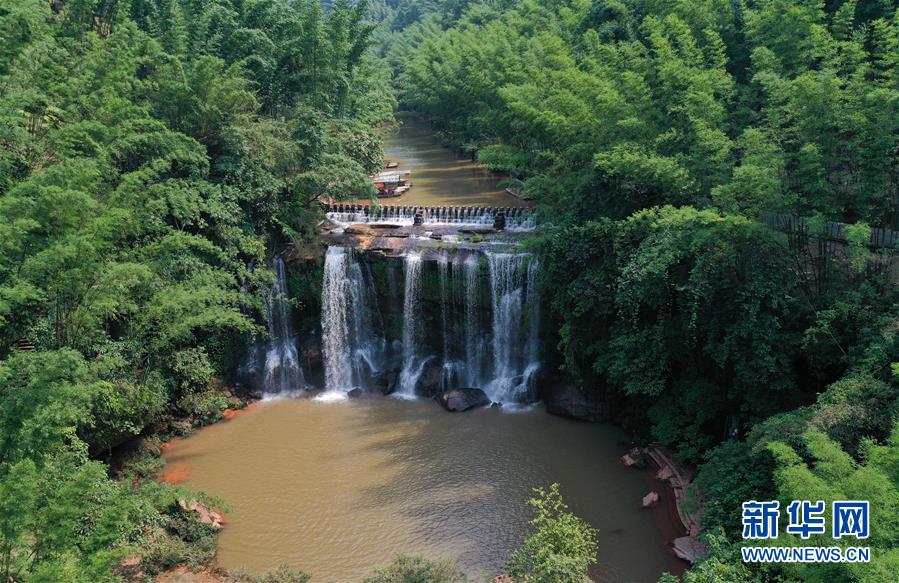 貴州赤水四洞溝景區的“水簾洞”(6月4日攝)。 貴州遵義赤水市有眾多大大小小的瀑布群,素有“千瀑之市”的美譽,飛瀑美景吸引八方游客前來賞景度假。 新華社記者馮為民攝