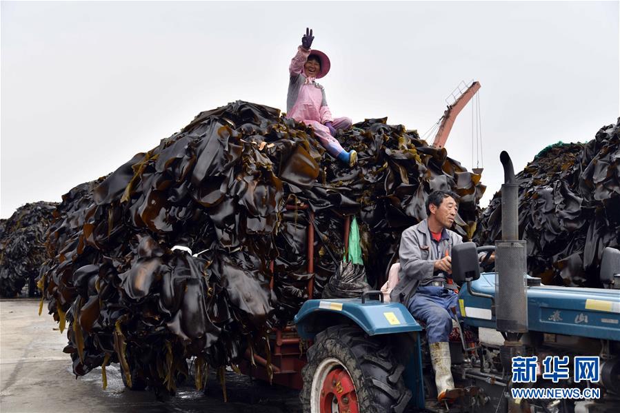 海島居民展示剛剛收獲的海帶(5月24日攝)。新華社記者 朱崢 攝
