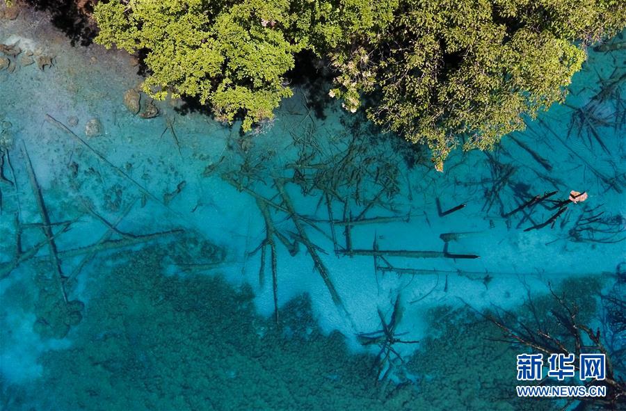 這是九寨溝景區(qū)的五花海景點(6月5日無人機拍攝)。