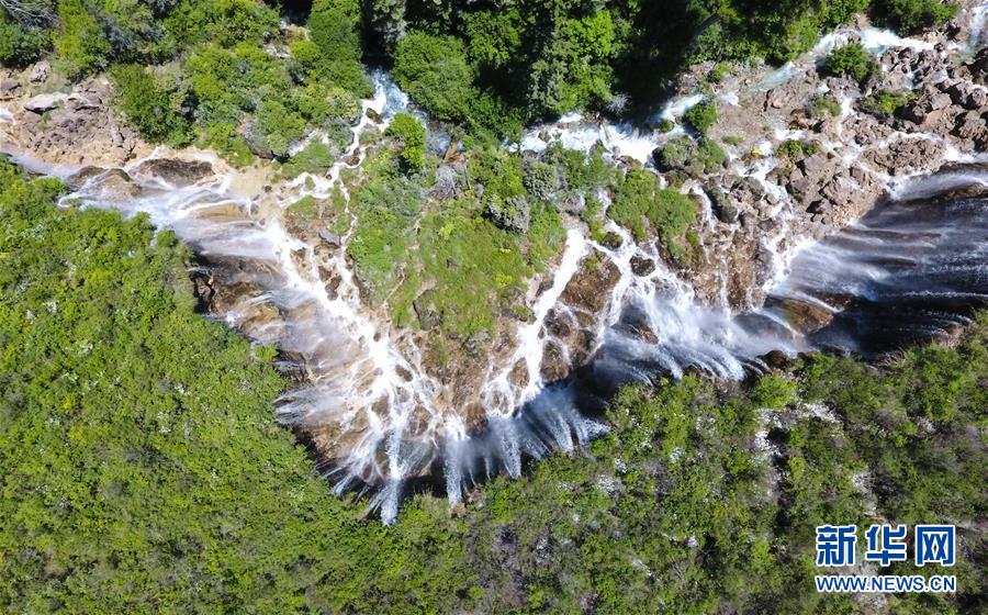 這是九寨溝景區的諾日朗瀑布景點(6月5日無人機拍攝)。 新華社記者薛玉斌攝