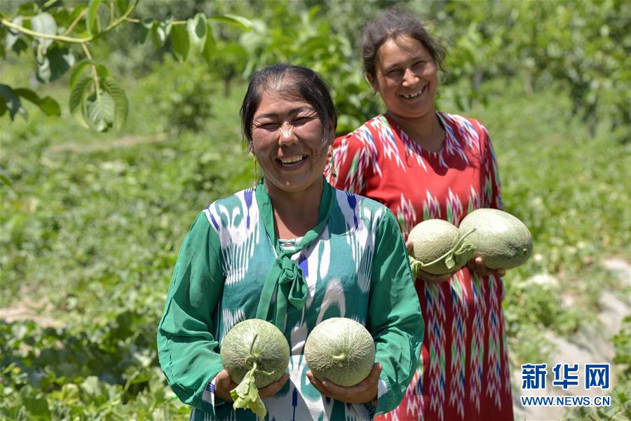 6月23日,新疆喀什地區巴楚縣的瓜農在采摘留香瓜。新華社記者 丁磊 攝