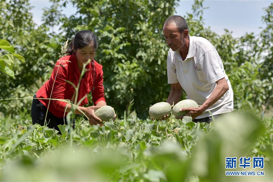 6月23日,新疆喀什地區巴楚縣的瓜農在采摘留香瓜。新華社記者 丁磊 攝