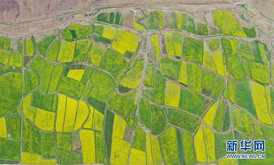 7月2日在拉薩市堆龍德慶區德慶鄉拍攝的油菜花田(無人機拍攝)。 近日,西藏各地的油菜花盛開,呈現出生機勃勃的夏日美景。 新華社記者 普布扎西 攝