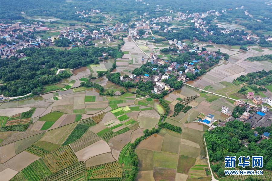 這是廣西全州縣鳳凰鎮(zhèn)鳳凰嘴渡口附近的田園(6月29日無人機拍攝)。 新華社記者 陸波岸 攝
