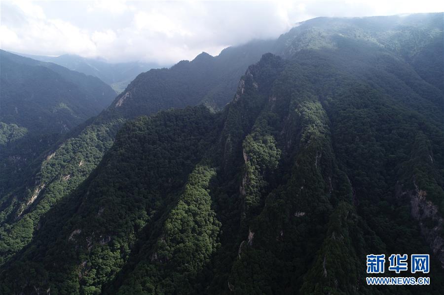 云霧繚繞的太白縣青峰峽景區(7月10日無人機拍攝)。 陜西太白縣青峰峽國家級森林公園位于秦嶺主峰太白山北麓,這里青山疊嶂,瀑布穿流,氣候涼爽,年平均氣溫7.6攝氏度,成為炎炎夏日中人們避暑休閑的好去處。 新華社記者 邵瑞 攝