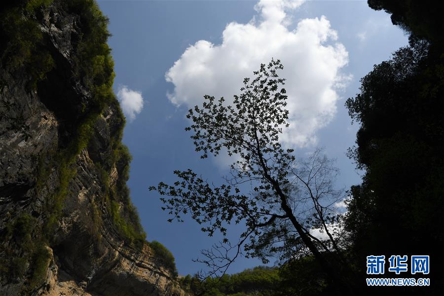 4月22日無人機(jī)拍攝的地洞河天坑。 新華社記者 張博文 攝