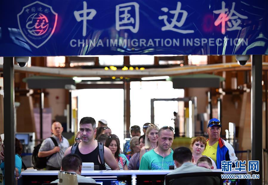 外國游客在三亞鳳凰國際機場通關入境(2018年6月1日攝)。新華社記者郭程攝