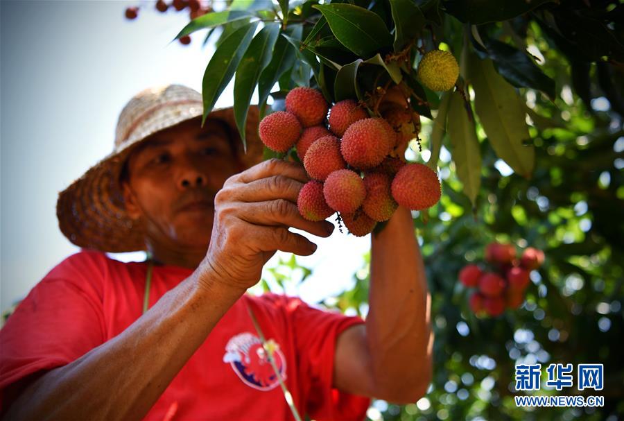 海口市三門坡鎮農民在果園采摘荔枝(2019年5月15日攝)。 新華社記者郭程攝