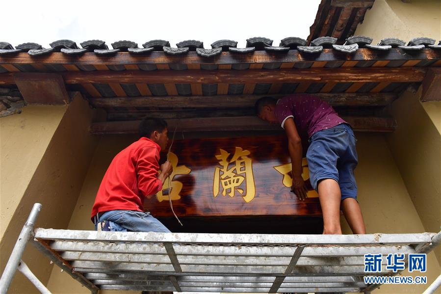 在廣西融安縣大良鎮古蘭村古蘭屯,村民在修繕古民居(8月18日攝)。 新華社記者 黃孝邦 攝