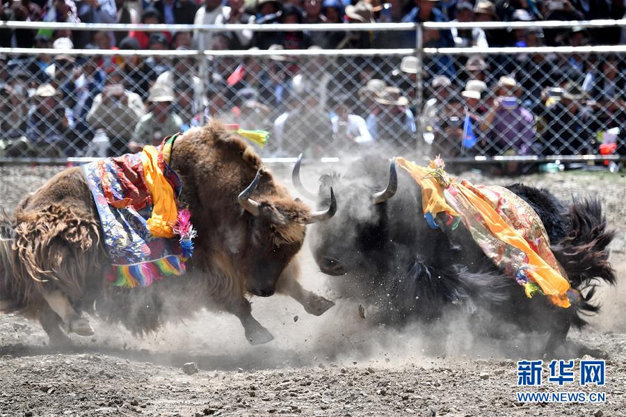者下鄉(xiāng)斗牛節(jié)歷史悠久,是西藏自治區(qū)非物質(zhì)文化遺產(chǎn)。牧民為參加比賽的種牦牛披綢掛緞,將牛群趕到位于日喀則市白朗縣者下鄉(xiāng)的斗牛場(chǎng)上。參賽的種牦牛為了爭(zhēng)奪牛群的控制權(quán),在成群的母牛面前,更加好斗。角斗有的瞬間分出勝負(fù),有的持續(xù)幾十分鐘,最終勝出的被稱為“牦牛至尊”。