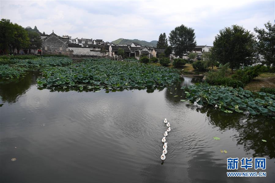 這是呈坎村內的荷塘(8月28日攝)。新華社記者劉軍喜攝