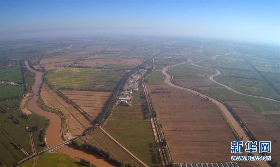 青銅峽市的寧夏引黃灌區(qū)(9月1日無人機拍攝)。新華社記者劉詩平攝
