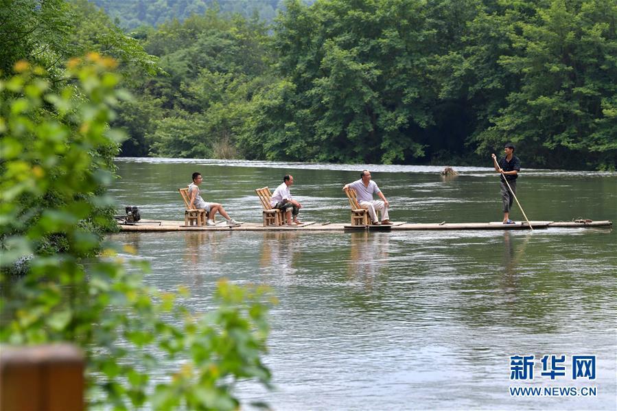 5月29日,沿岸村莊的巡河護河隊在巡查河面,清除上游下來的垃圾。新華社記者彭昭之攝
