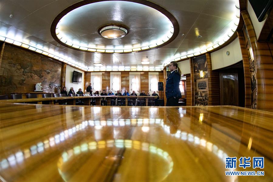 9月14日,在俄羅斯摩爾曼斯克,游客在核動力破冰船“列寧”號內(nèi)部聆聽工作人員講解。 新華社記者 白雪騏 攝