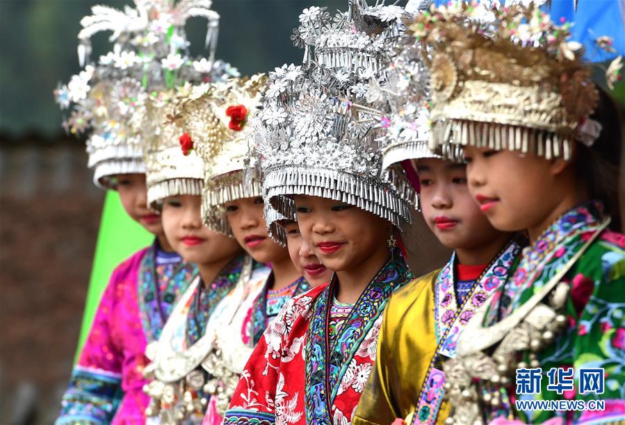 10月28日,在廣西融水苗族自治縣拱洞鄉龍令村,苗家小姑娘觀看民俗表演。新華社記者 黃孝邦 攝