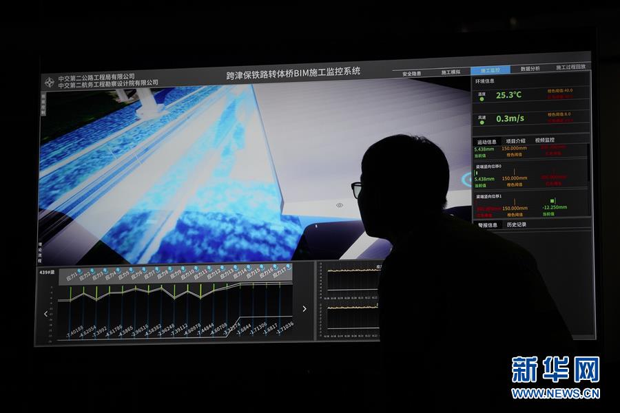 8月27日凌晨,施工人員在監控橋梁轉體施工。新華社記者楊世堯攝