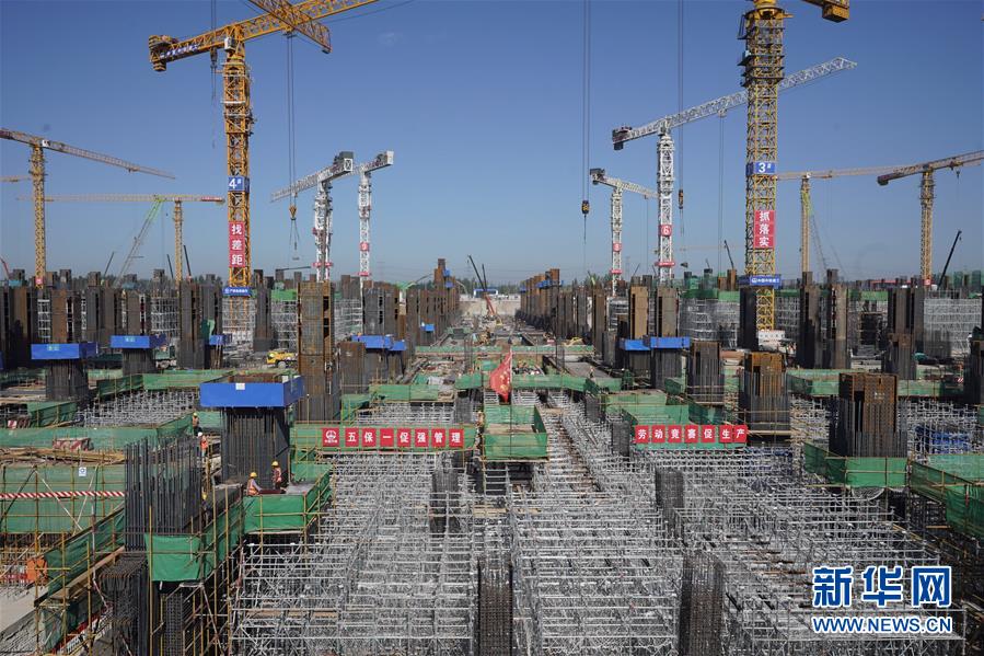 8月27日,工人在雄安站施工。新華社記者邢廣利攝