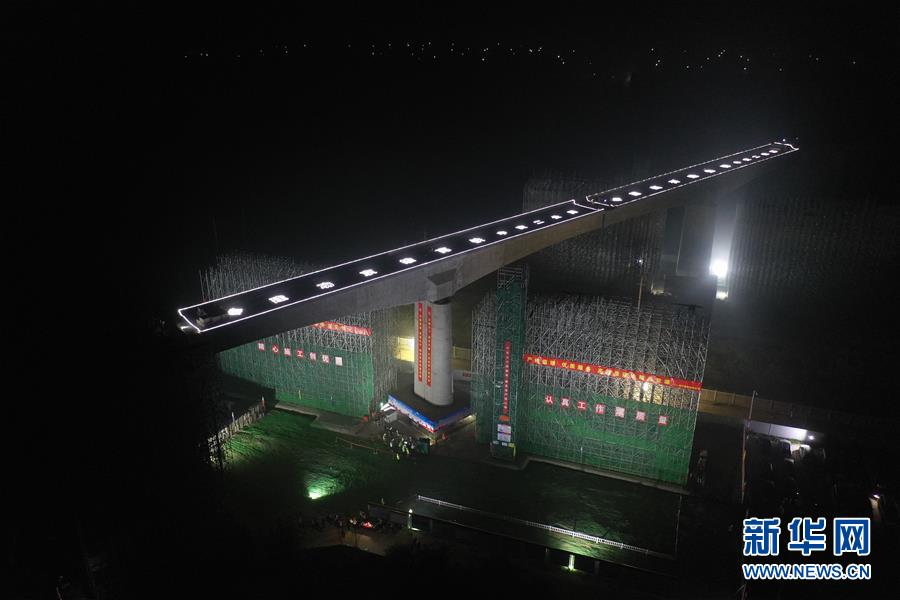 8月27日凌晨,施工人員在進行橋梁轉體施工。新華社記者楊世堯攝