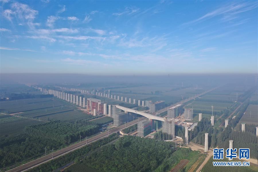 這是8月27日晨無人機拍攝的轉體完成的橋梁。新華社記者邢廣利攝