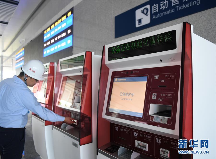 9月18日,工作人員對京雄城際北京大興站內的自動售票機進行檢查。新華社記者張晨霖攝