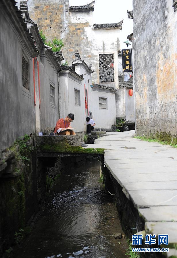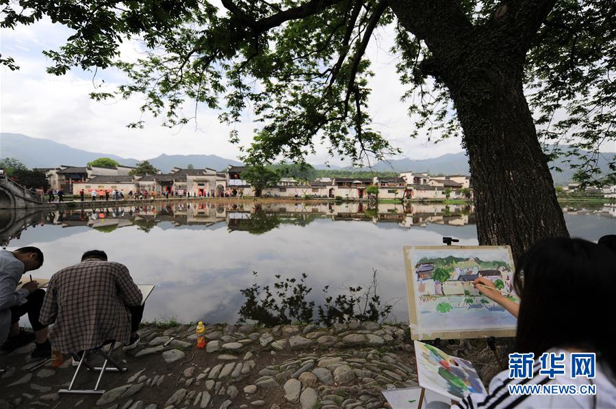 4月24日,繪畫愛好者在宏村風景區寫生。新華社記者任鵬飛攝