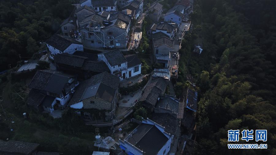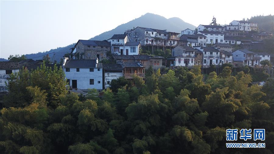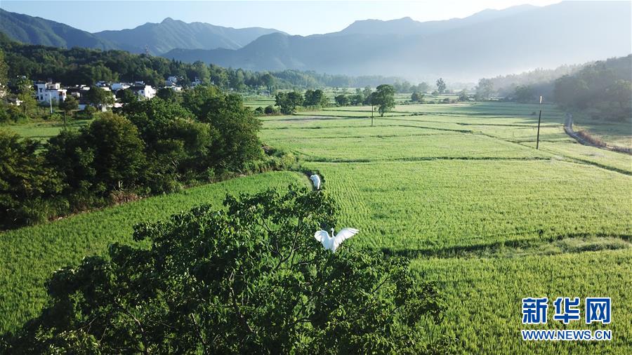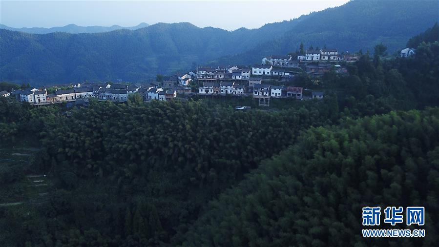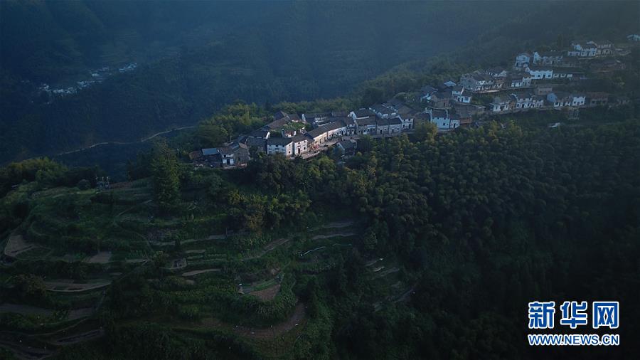 晨曦中的木梨硔村景色(9月18日無人機拍攝)。9月18日清晨,地處皖南山區的安徽省黃山市休寧縣木梨硔村沐浴在晨曦之中,靜謐祥和。新華社記者張端攝