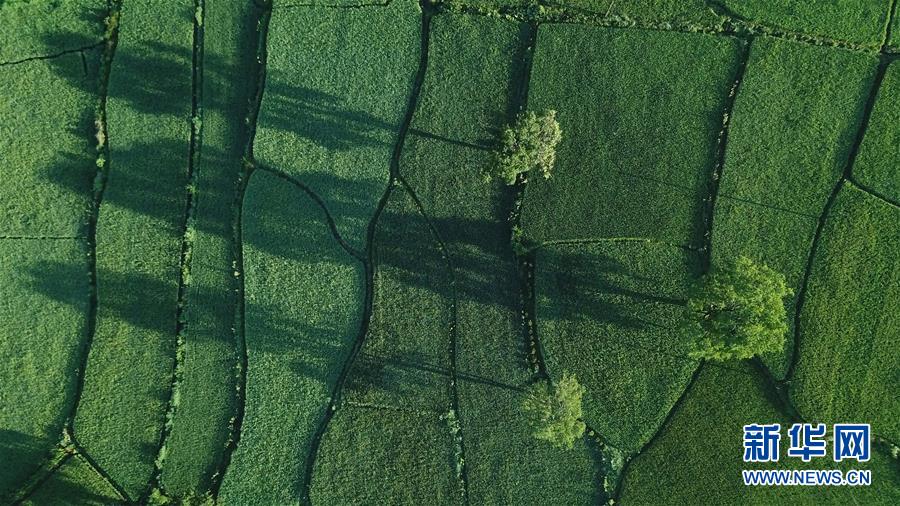 這是8月4日無人機拍攝的安徽黟縣宏村風景區附近的農田晨景。新華社記者張端攝