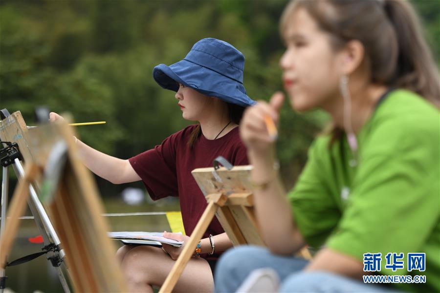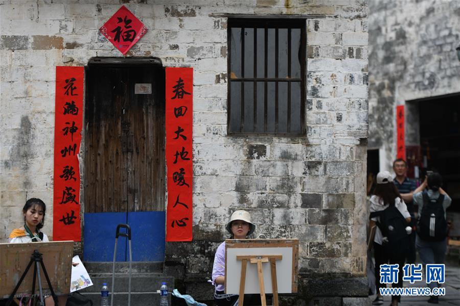 4月24日,繪畫愛好者在西遞風景區寫生。新華社記者任鵬飛攝