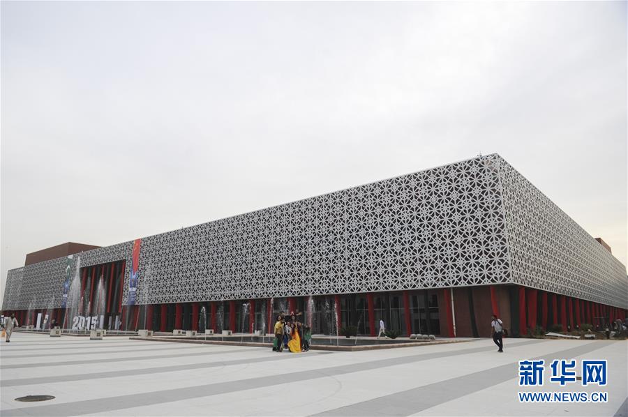 2015年3月27日,巴基斯坦民眾在伊斯蘭堡巴中友誼中心大樓前合影。中國援建的巴中友誼中心占地總面積4.8公頃,是一座集會議、展覽、學術交流、文藝演出、經貿往來于一體的多功能綜合建筑,是中巴文化交流活動的重要場所。新華社記者黃宗治攝