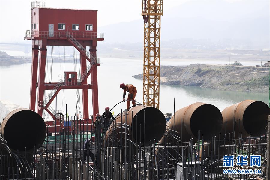 10月6日,工人在大藤峽水利樞紐工程工地上搬運鋼材。新華社記者曹祎銘攝