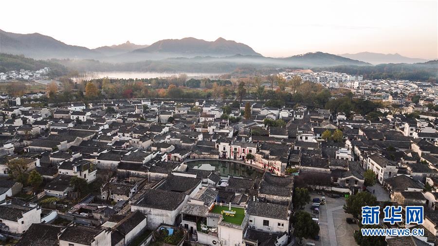 這是11月15日無人機拍攝的宏村風景區晨景。新華社記者韓曉雨攝