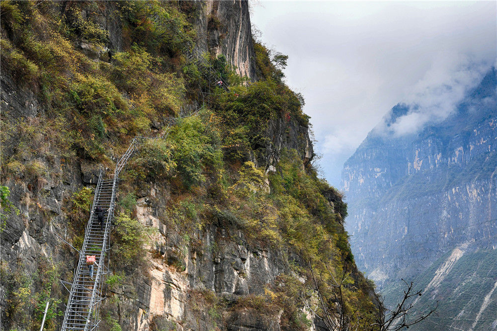 2019年11月16日,四川涼山,昭覺縣支爾莫鄉阿土列爾村的“鋼管天梯”。