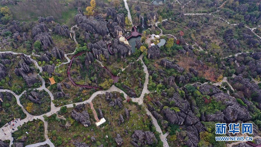 11月28日,空中俯瞰石林景區(無人機拍攝)。新華社記者江文耀攝