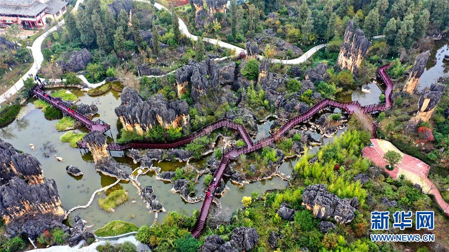 11月28日,游客在石林景區游覽(無人機拍攝)。新華社記者江文耀攝