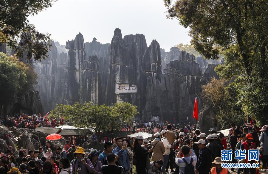 石林景區游客如潮(11月27日攝)。新華社記者蘭紅光攝
