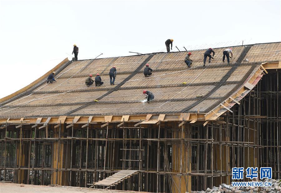 11月28日,工人們在大糯黑村的劇院建設現場工作。新華社記者周華攝