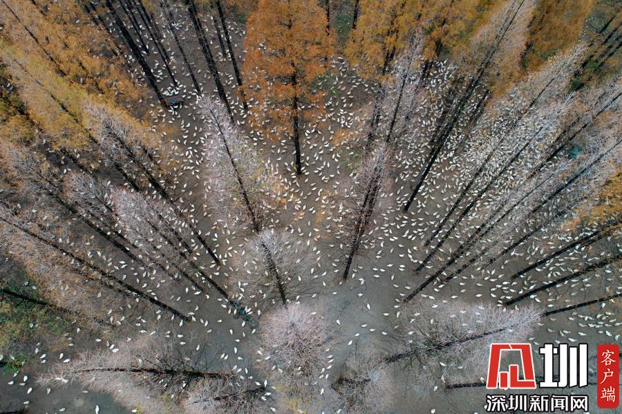 江蘇泗洪5000多只鵝林場吃食,場面壯觀。