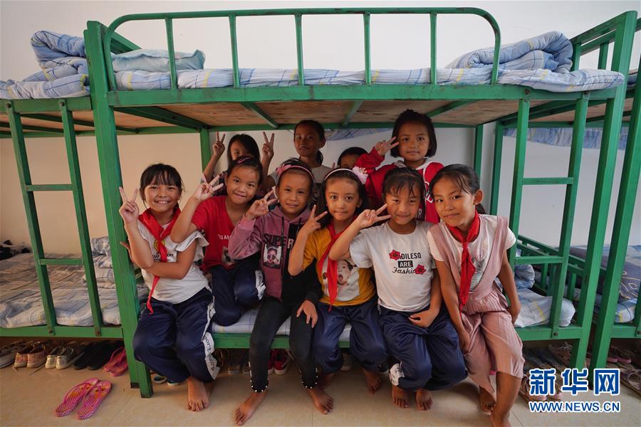 大興地鎮維拉壩“珠海小區”小學一年級學生在宿舍合影(6月24日攝)。新華社記者秦晴攝